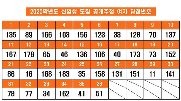 5) 등록 마감 후 결원 보충은 대기번호 추첨에 의한 예비 합격자의 순위명부에 의거하여 입학함.
